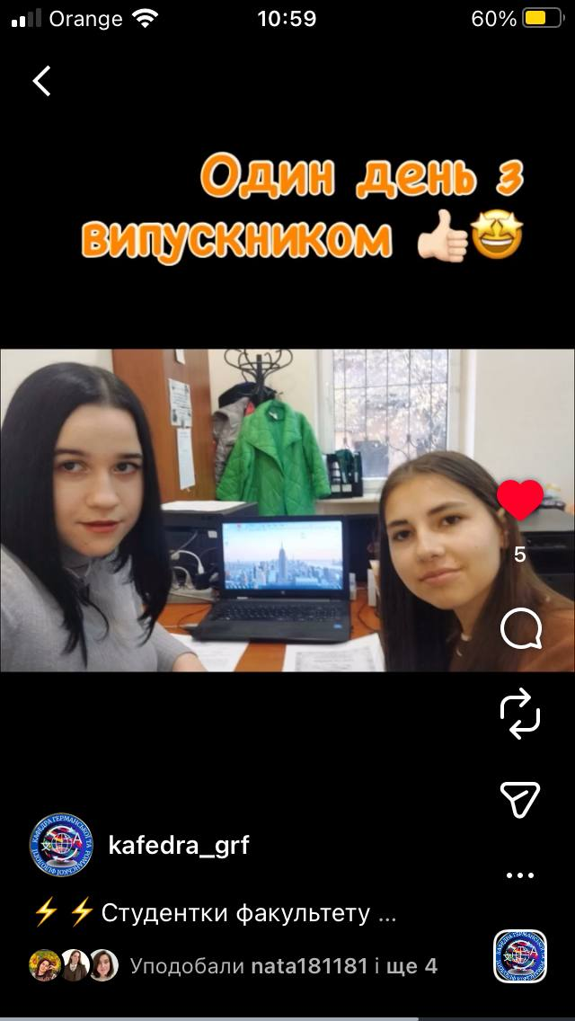 -Вектор лінгвістики та бізнесу: Студентки Дар’я Коробкова та Людмила Малогулко провели робочий день у бюро перекладів «Азбука». Менторство випускниці факультету Анни Задорожної дозволило дівчатам побачити внутрішні механізми управління перекладацькими проєктами та відчути динаміку сучасного ринку лінгвістичних послуг.
