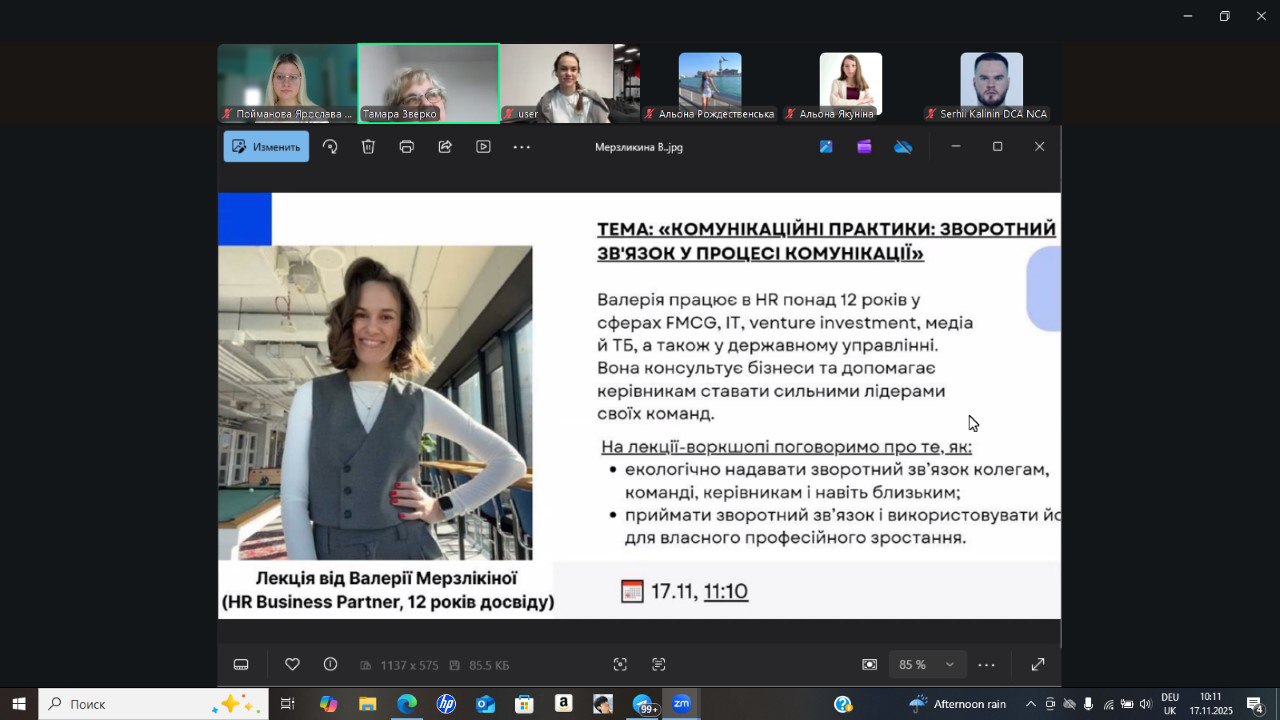 Щиро дякую за можливість поділитися досвідом і поспілкуватися зі студентами. Це особливий стан, коли ти можеш не тільки поділитися своїм досвідом, але й інсайтами, відчути інтерес до того, про що розповідаєш. Відчула потребу в такому спілкуванні - не тільки для студентів, а й для себе.