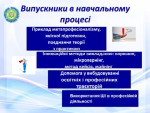 Відбулося поглиблення інтеграції практичного професійного досвіду випускників в освітній процес; формування у здобувачів актуальних фахових компетентностей; посилення зв’язку теорії з практикою; сприяння професійній орієнтації.