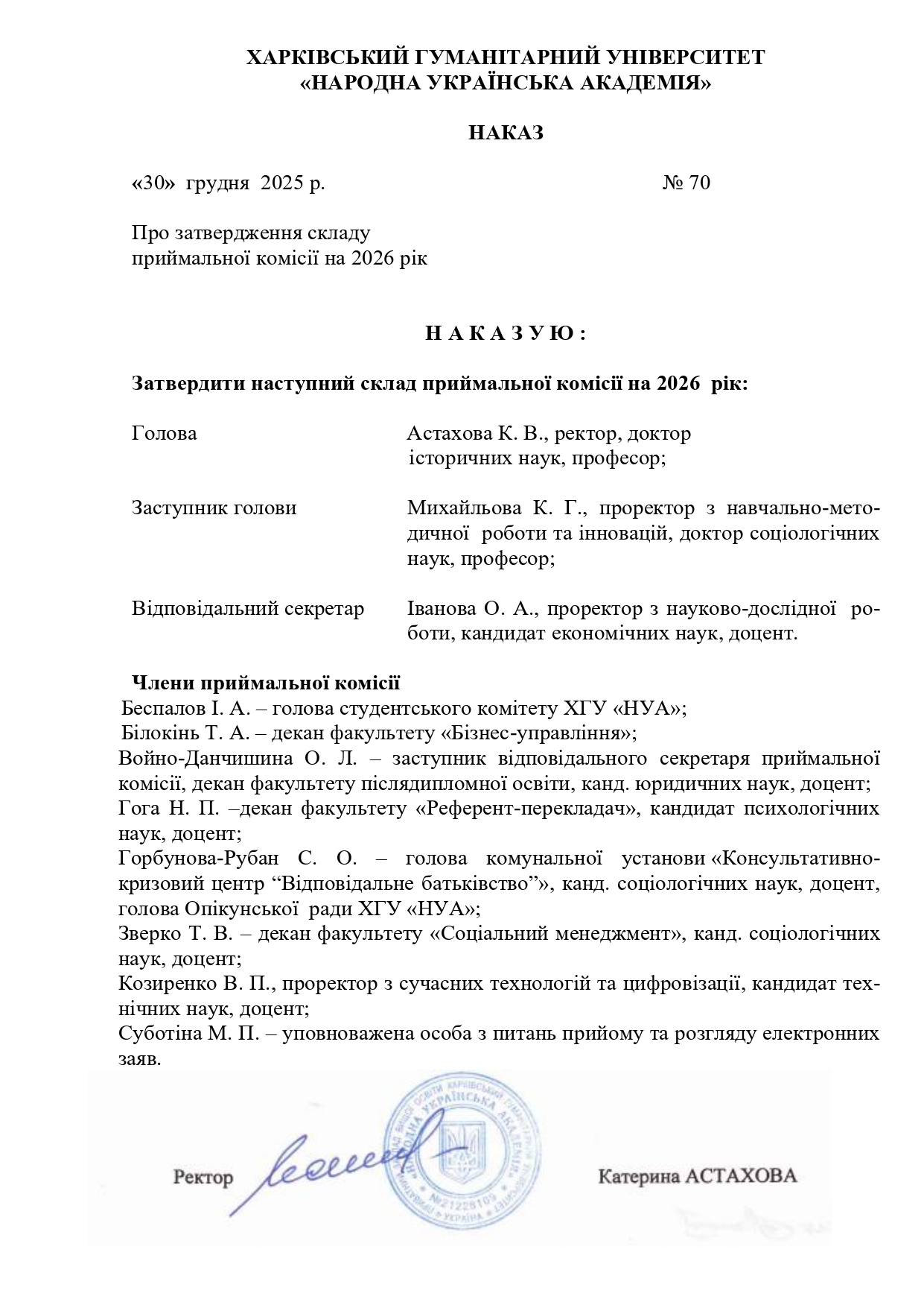 Приймальна комісія:
